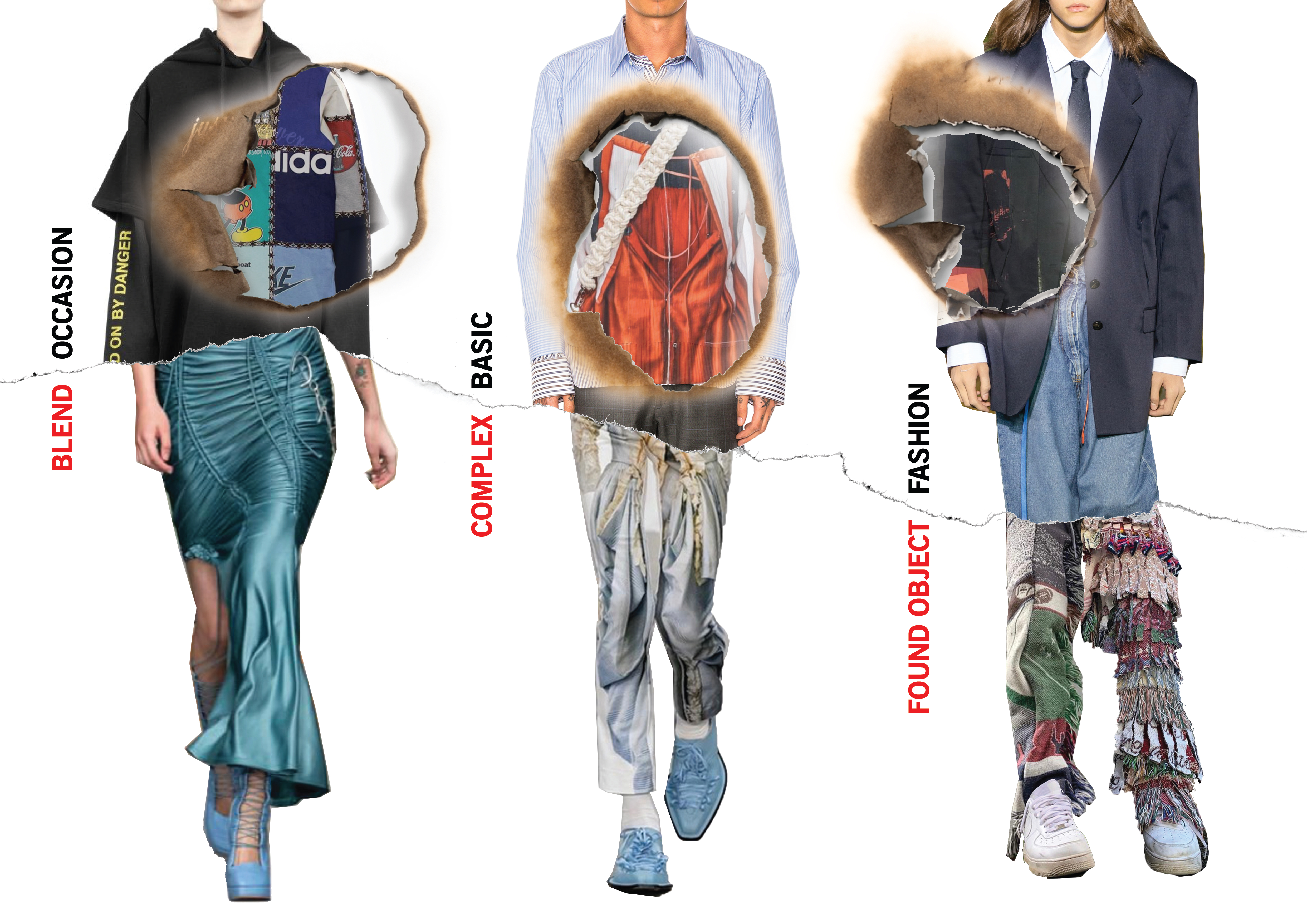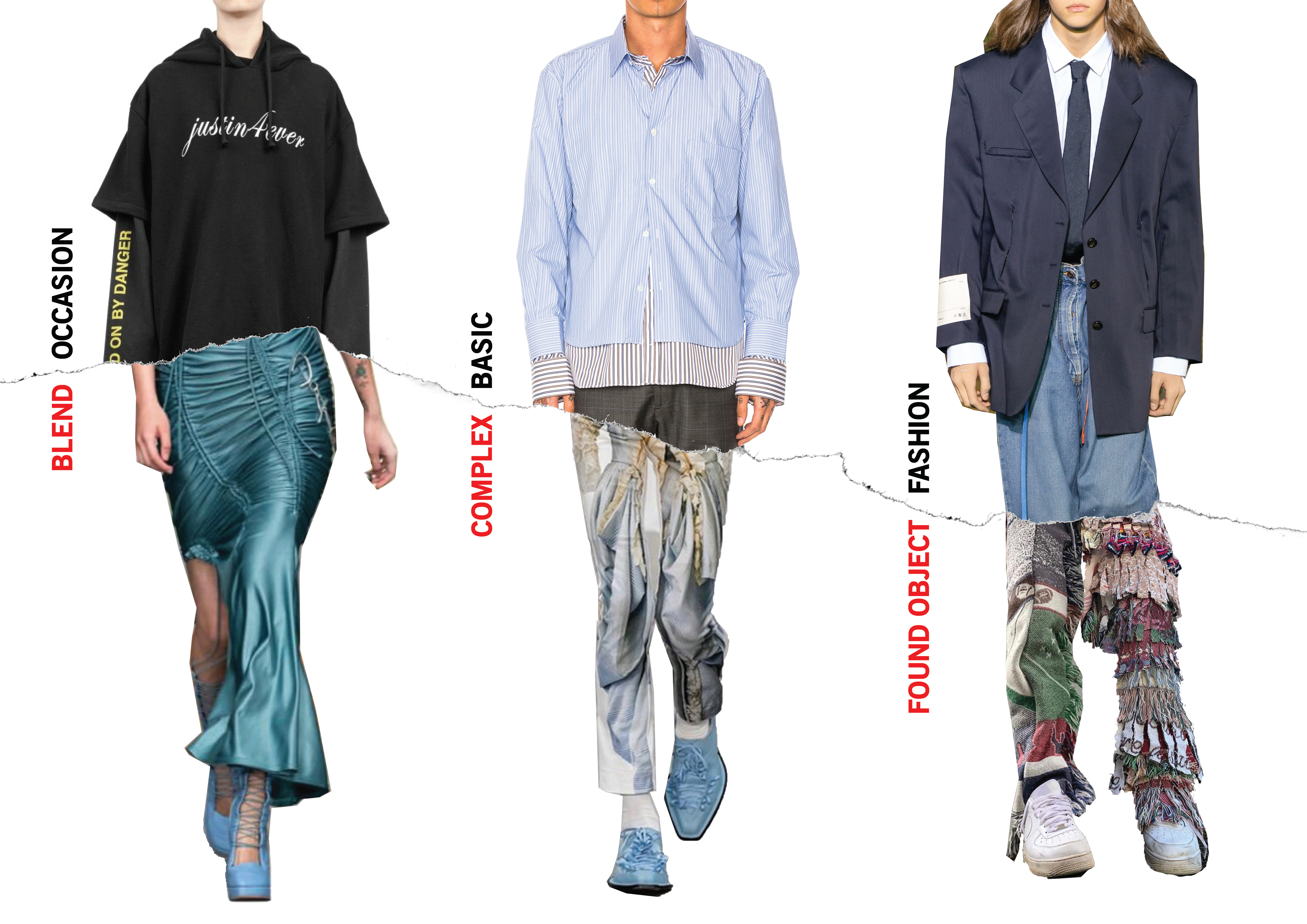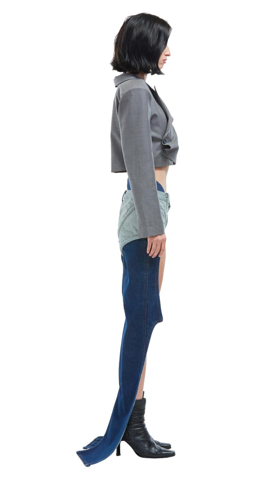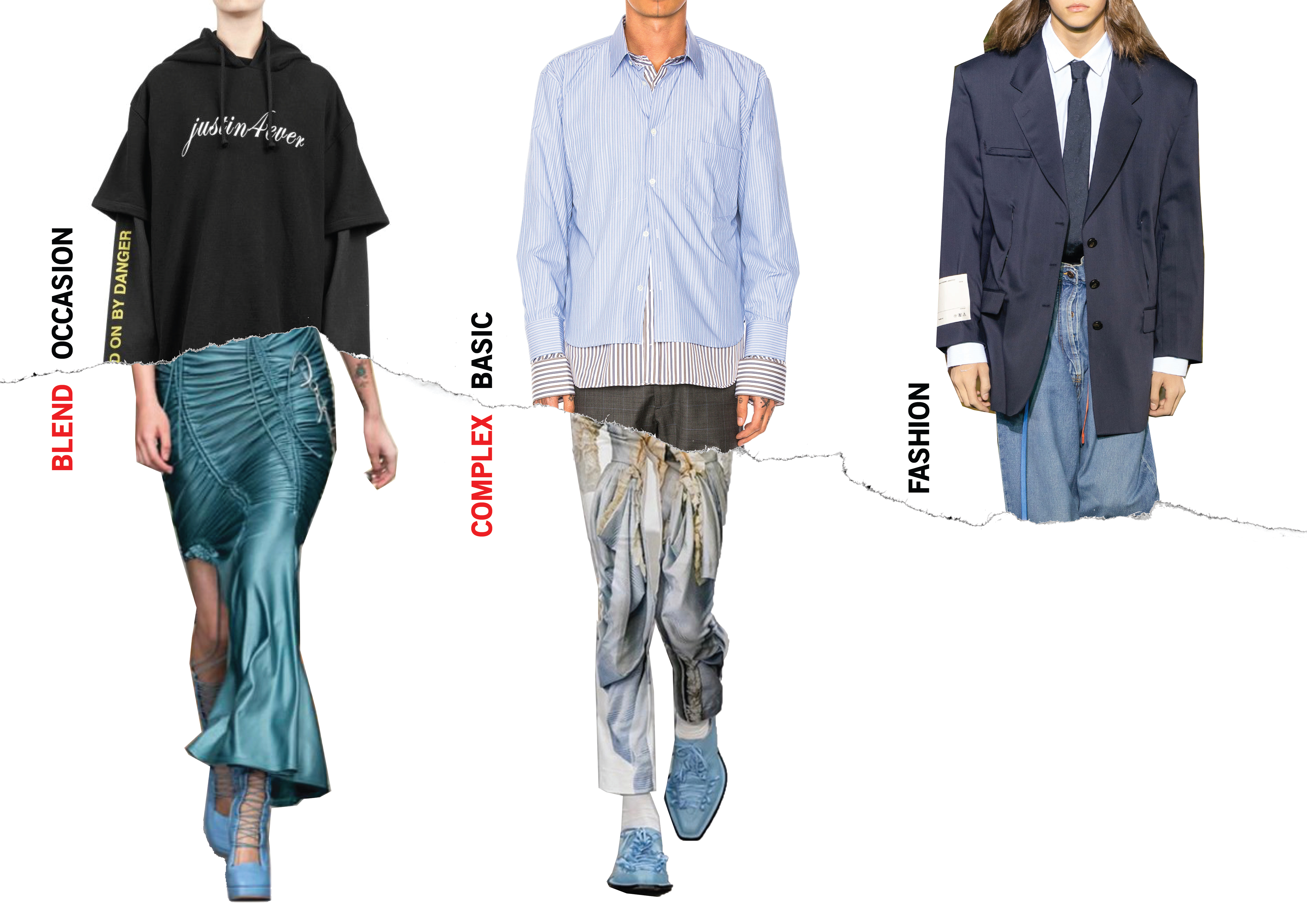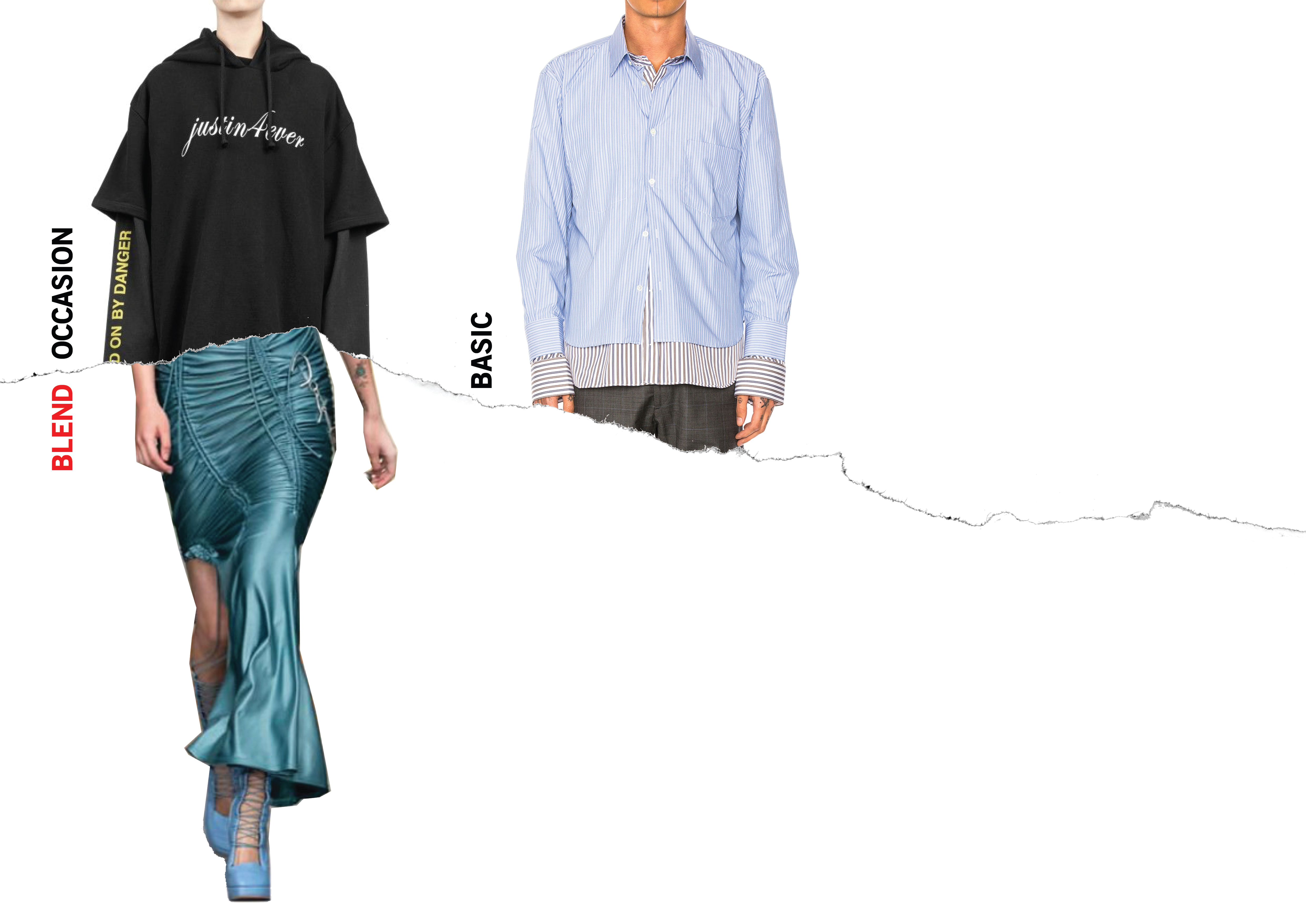 It becomes a raw-edge tanktop, stud-stripe flare slack pants, vaquero-curve cutting jeans, and so on.