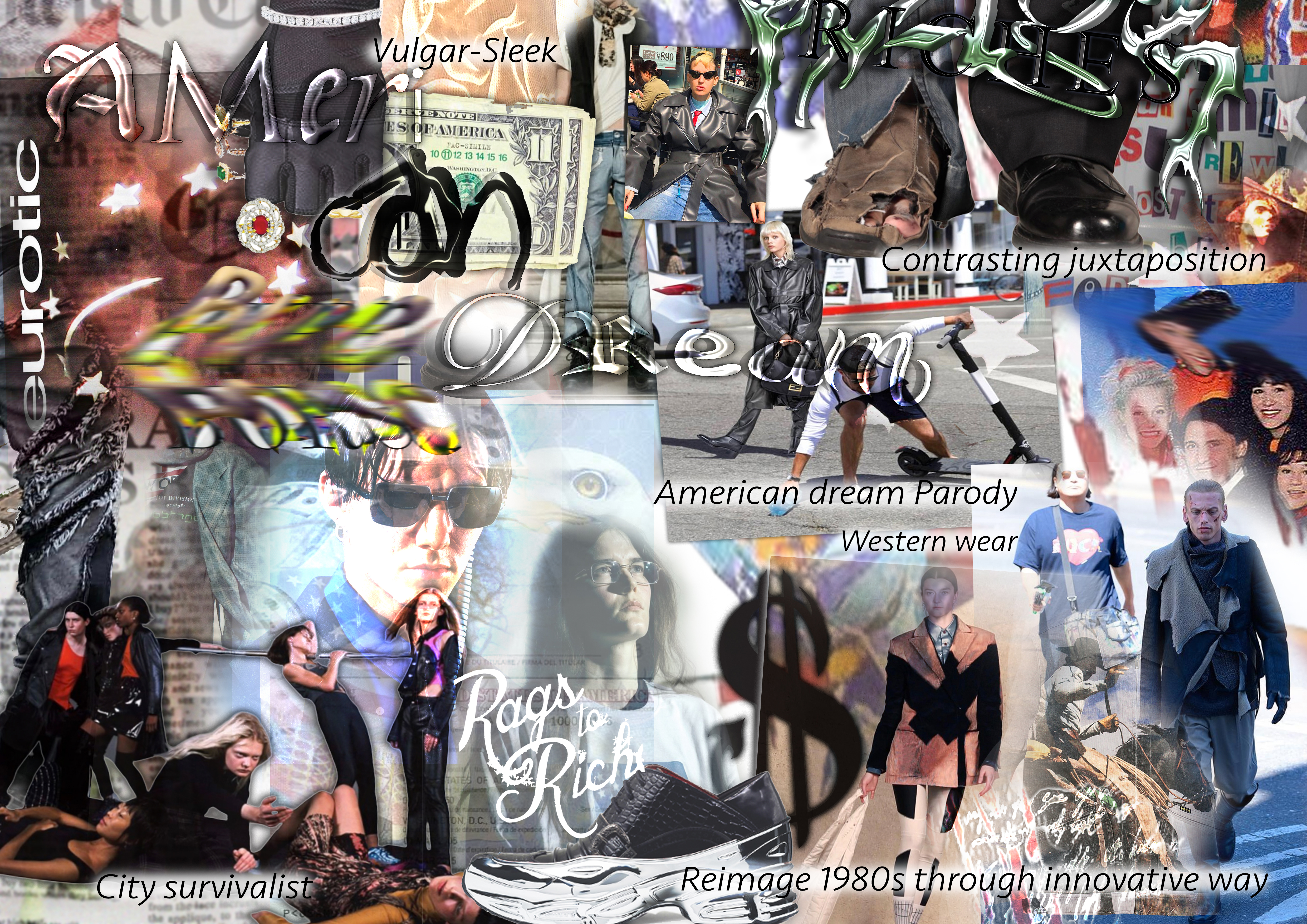 Casual-Versatile apparel merges with the city survivalist and 80s trashy aesthetic. Rags to riches story were used as a key message.